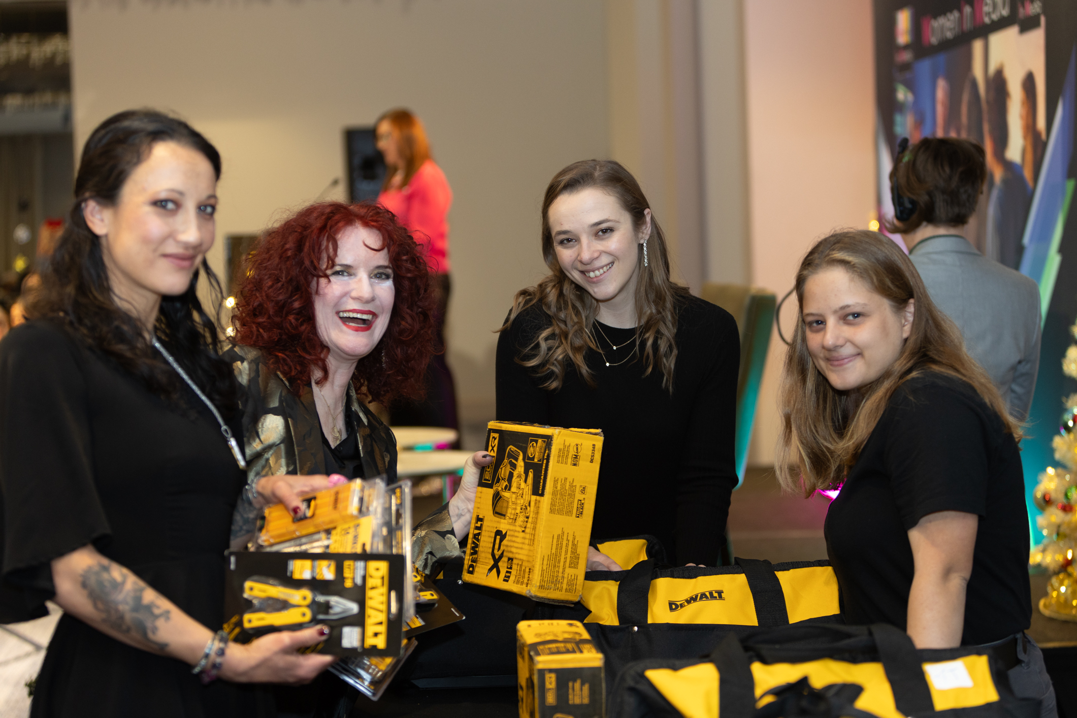 This Holiday Toast we gave gifts to our Women In Media grips, carpenters, and art department who have a serious career trajectory in those fields! Women In Media members Emma Forthofer, Gray Brackett, and Macie Collela received $1,200 worth of DeWalt power tools through their Grow the Trades program.